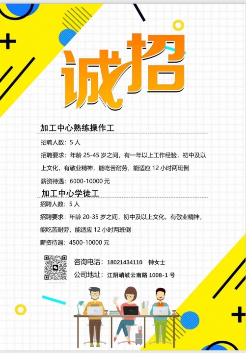 招工启事本公司江苏创良智能数控...
